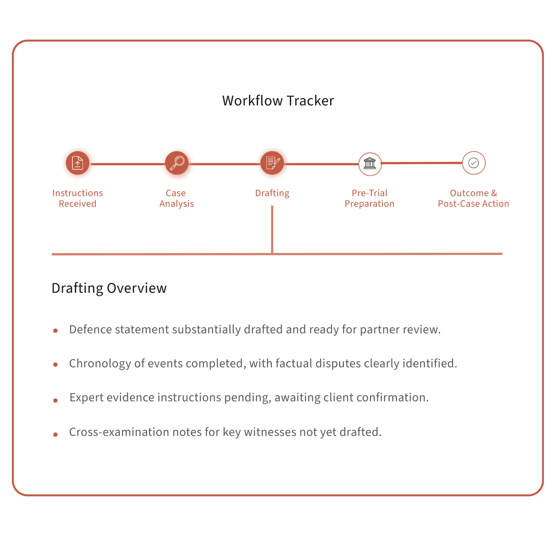 Upload case bundles, PDFs, witness statements or lengthy email chains. LawForm reads and distils them into clear, structured summaries that lawyers can act on.